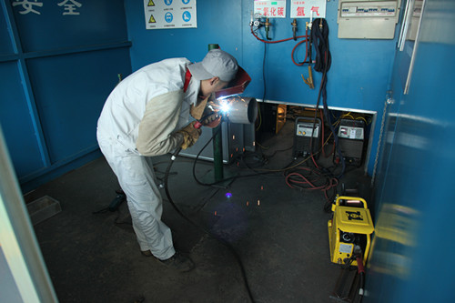 全部競賽分為電焊工組和氣焊工組兩個組別。電焊工組實際操作競賽采用三種焊接方法進行,包括:立焊位置焊接碳鋼板材對接,焊接工藝為手工焊條電弧焊(SMAW);斜45°角位置焊接Ф60碳鋼管對接,焊接工藝為直流氬弧焊(GTAW);水平位置焊接Ф159碳鋼管對接,焊接工藝為CO2氣體保護焊(GMAW)。競賽組委會領導經過討論和權衡之后再次選擇時代焊機作為本次重要賽事的唯一指定用機。多年以來,時代焊機為國內各行各業的大中型焊接技能競賽提供了優質的服務。時代產品的穩定性很高,用戶認知性很廣。而且世界技能大賽國內選拔賽也全部采用的是時代焊機作為參賽機。本次時代公司為大賽提供了PNE61-400全數字手工氬弧兩用焊機及TDN 3500全數字氣保焊機兩個機型。提供的比賽機數量將近100臺。為了做好大賽的保駕護航工作時代公司安排多名有經驗的服務人員在賽前協助主辦方做好安裝調試工作。開賽后時代焊接高級技師來到賽場為選手答疑解惑,確保大賽順利進行。